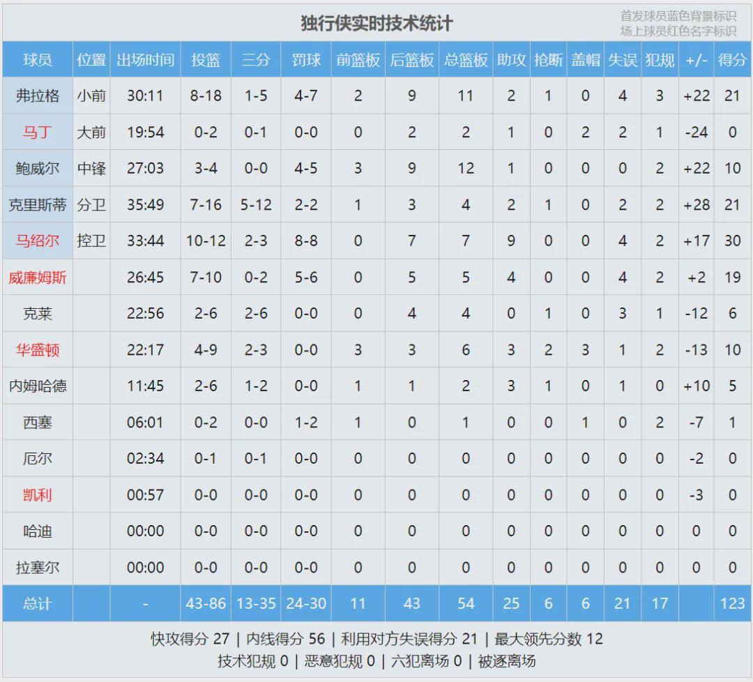 北京时间1月23日,独行侠主场123-115战胜勇士。库明加出战9分28秒,3投3中,罚球4中4,得到10分1板2助2断,正负值+18。上半场还剩4分28秒,库明加在上篮时崴脚受伤退出比赛。巴特勒已经赛季报销,如今库明加也伤了。自巴特勒伤停之后,库明加打了一场半,一共出场30分钟得了30分。只看进攻端表现,库明加效率很高了。要知道,他已经被DNP一个月。从1...